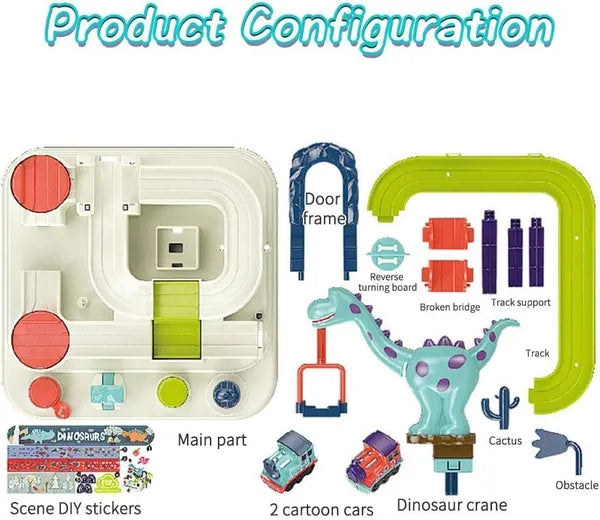 Take your little explorer on a prehistoric journey with the Dinosaur Adventure Car Set! Featuring a colorful design and an adorable dinosaur centerpiece, this interactive playset comes with a mini train, track sliders, levers, lifts, and obstacle challenges — perfect for boosting creativity and hand-eye coordination.